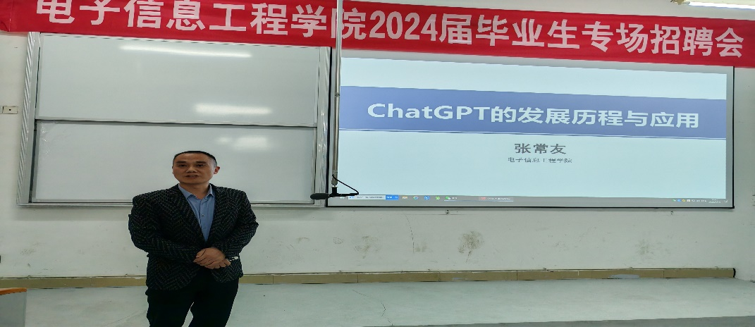 为进一步提升同学们对Chat GPT的了解,推动其在人工智能技术方面的发展与应用。4月14日晚19:00,电子信息工程学院于C106开展关于Chat GPT 的发展与应用专题讲座,办公室主任刘齐主持该讲座。