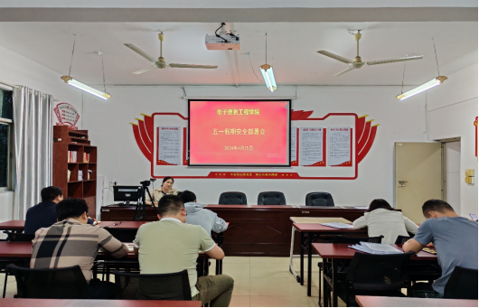 随着五一假期的临近,为确保假期期间的安全与稳定,提高全体师生的安全意识,明确各项安全措施,4月25日晚,电子信息工程学院组织召开五一假期安全部署会。党总支书记陈小华主持本次会议,全体辅导员(班主任)参加会议。