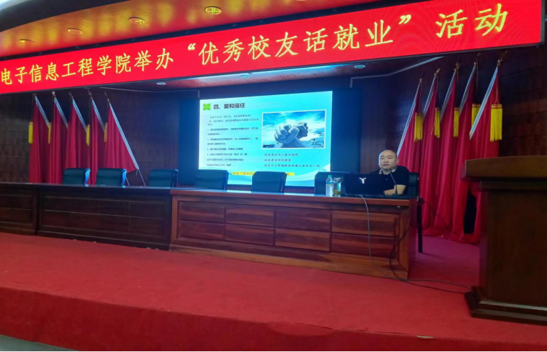为进一步发挥优秀校友的榜样作用,激励在校学生明确学习目标和方向,引导广大学生学有所用、学有所长、志存高远。电子信息工程学院于2024年4月30日上午举办了“优秀校友话就业”活动,本次讲座的主讲人为江西工程学院优秀校友兼客座教授何毕慎。我院200多名学生代表参加。