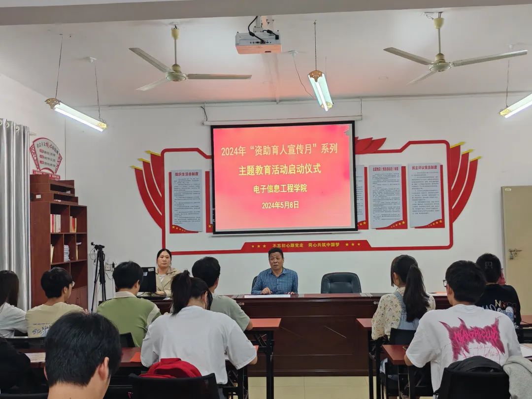 为进一步加大学生资助政策宣传力度,确保国家学生资助政策家喻户晓、深入人心,5月8日,电子信息工程学院于d201会议室开展2024年“资助育人宣传月”系列主题教育活动启动仪式,本次仪式由电子信息工程学院院长邹小金主持。