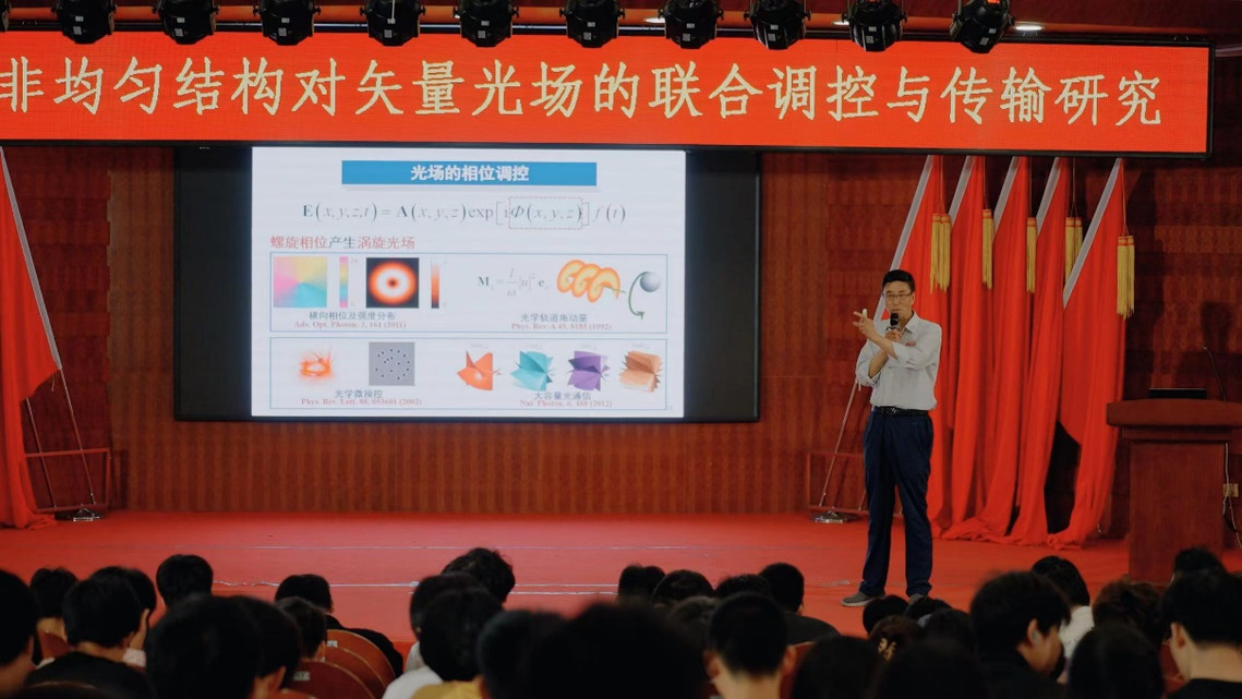 2024年5月22日,邀请了教授、博士生导师付文羽针对电子信息工程学院2021级和2023级本科生举行主题为《新型非均匀结构对矢量光场的联合调控与传输研究》的学术讲座。