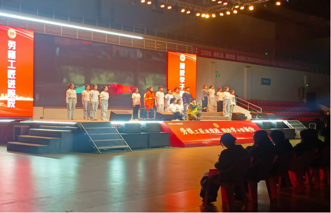 在“天工新余”篇章中,劳模们的动情讲述深深触动了在场每一位师生的心灵,也让关工委老同志倍感欣慰。全国劳模钟桂根以《扎根》为题,分享了自己从初出茅庐的新人成长为行业骨干的奋斗历程。他坚守岗位、精益求精的执着精神,让即将步入电子信息行业的学子们深受启发。关工委老同志结合自身工作经历,在聆听过程中向学子们补充解读“把青春锚在岗位上”的深刻内涵,帮助学子们更直观地理解工匠精神在职业发展中的重要意义。