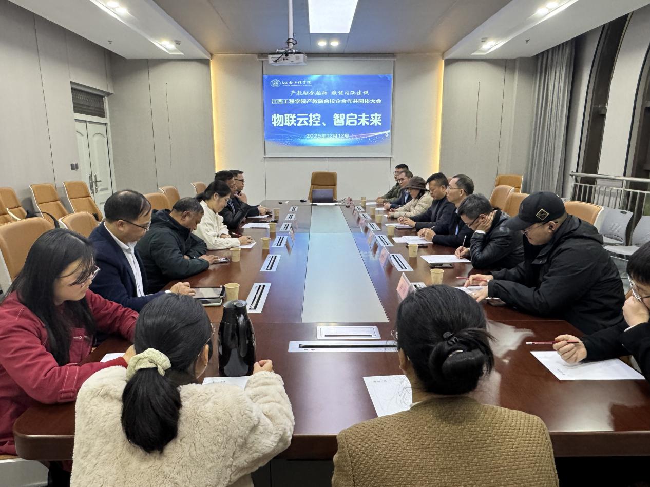 2025年12月12日下午,“物联云控、智启未来”电子信息工程学院产教融合校企合作研讨会在仙女湖校区隆重召开。大会以深化产教融合、强化校企协同为核心,聚焦电子信息领域人才培养与产业发展需求,搭建校企资源共享、优势互补的合作平台。电子信息工程学院院长邹小金、党总支书记陈小华、副院长黄大坤、各教研室主任,中国移动公司新余市分公司负责人谢志勇及来自电子信息、智能制造、物联网技术等领域的多家企业负责人齐聚一堂,共商合作大计,共绘产教融合发展新蓝图。