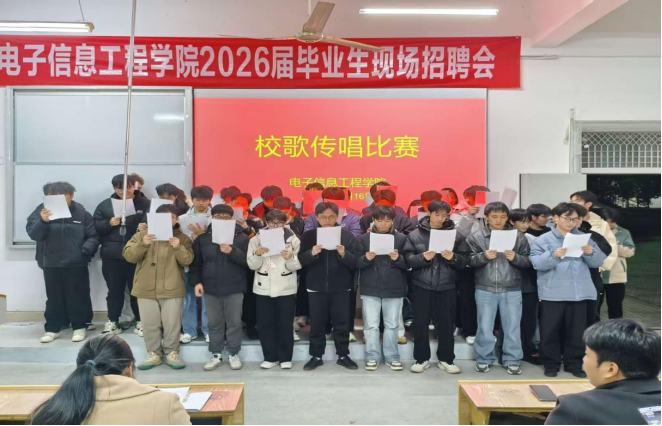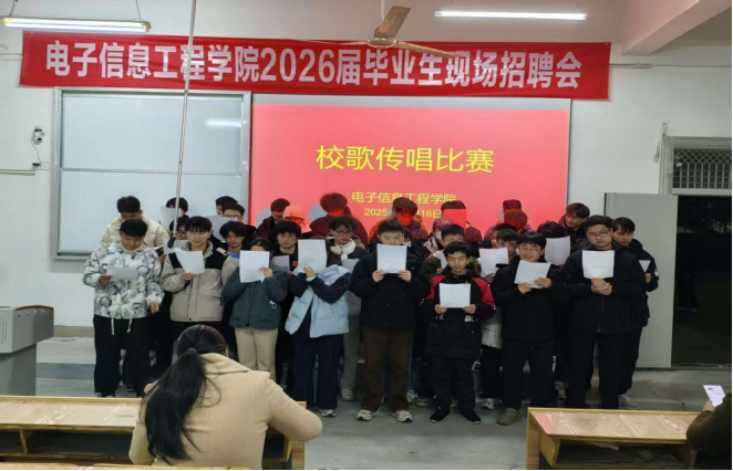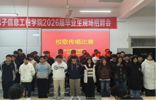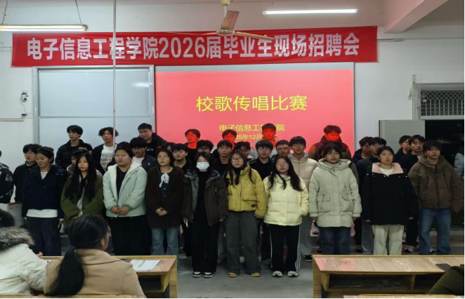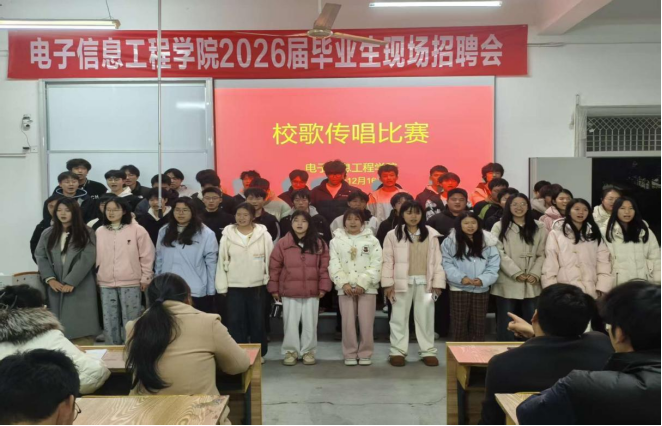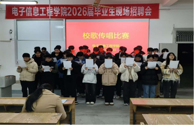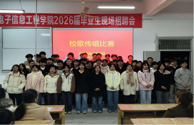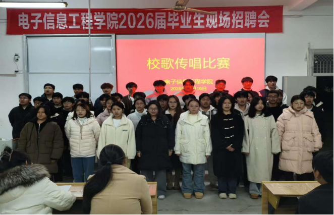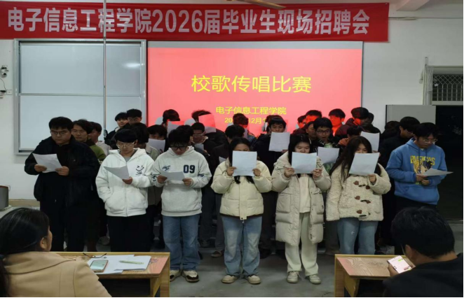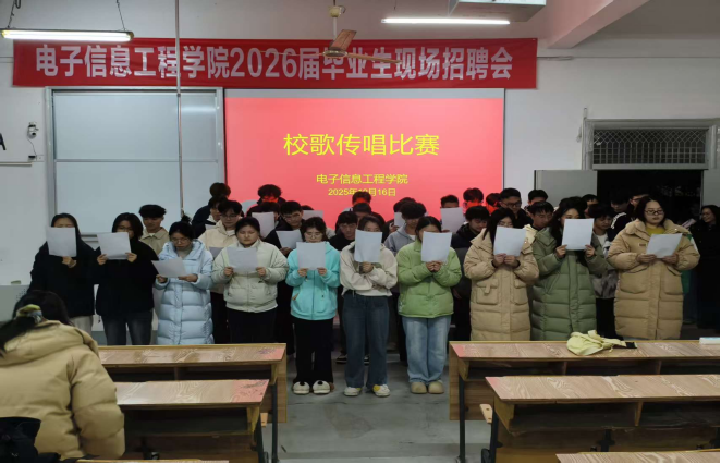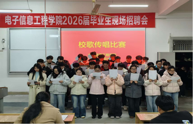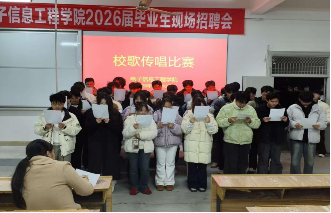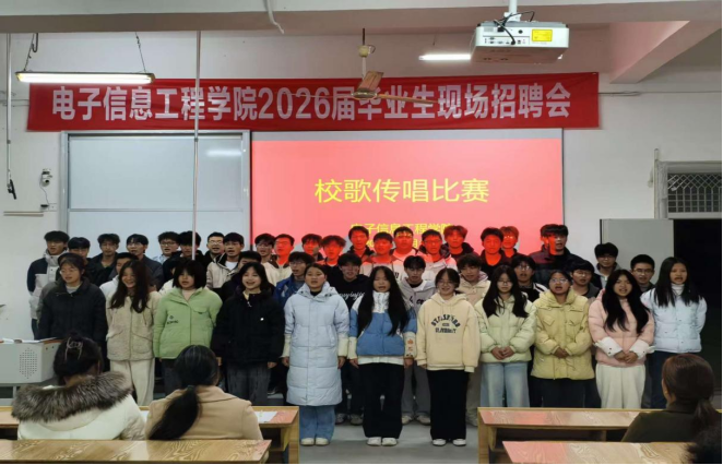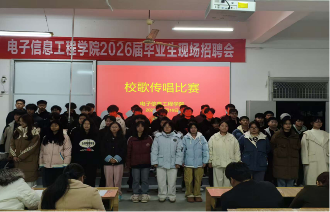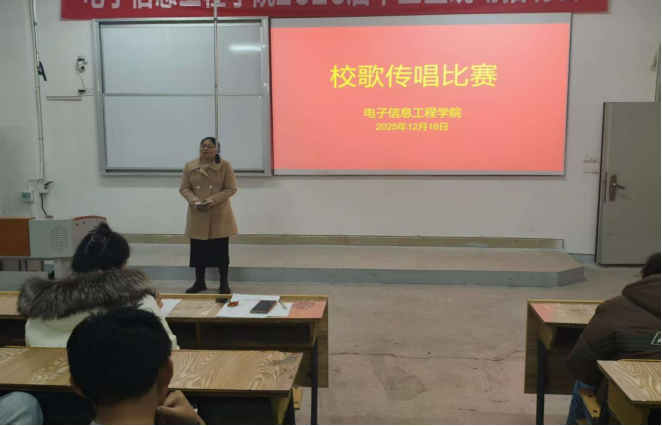 乐声起,风华正。20251216日,电子信息工程学院新生班级齐聚C106阶梯教室,参加校歌传唱比赛,当熟悉的旋律在阶梯教室内回荡,一场专属于电子信息工程学院的声音盛典拉开帷幕。来自各班的学子们齐聚一堂,以青春之声传唱校歌,以饱满热情诠释精神。