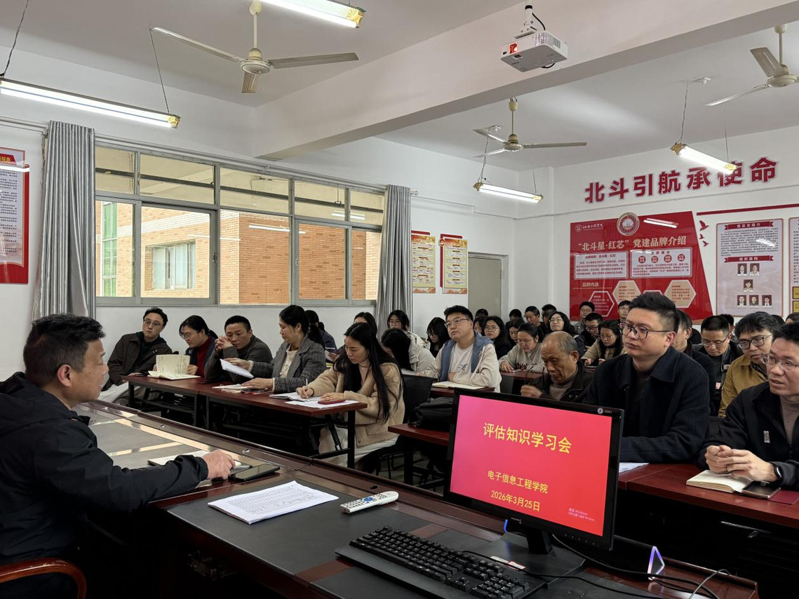 为进一步统一思想、凝聚共识,扎实推进迎评促建各项工作,3月26日,电子信息工程学院在D201召开评估知识学习会。学院院长邹小金主持会议并带领全体教师集中学习本科教学工作合格评估相关知识,围绕评估工作的总体要求、重点任务和具体落实路径进行了系统讲解和再动员、再部署。电子信息工程学院全体教师参加会议。