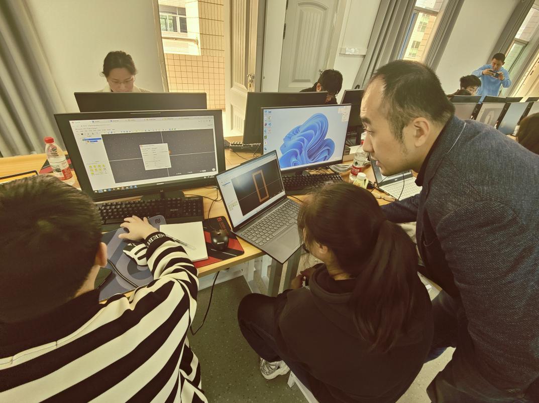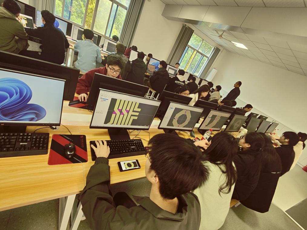 培训内容涵盖集成电路设计基础、射频IPD工艺、传输线与微带线理论、电感与变压器设计、滤波器与功分器实现、封装协同仿真等多个模块。培训采用“理论讲解+实践操作”相结合的方式,学生在教师指导下完成了微带线特性阻抗提取、螺旋电感Q值优化、变压器AI参数优化、低通滤波器与威尔金森功分器设计等7项实践任务,全面掌握了从版图绘制、电磁仿真到AI驱动的版图优化、芯片封装-PCB联合仿真的完整设计流程。