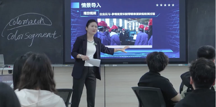 在科研过程中,王景景教授注重产学研结合,积极与企业开展合作。她带领课程团队与企业共建实践平台,将企业的实际需求引入科研项目,为企业解决技术难题的同时,也为教学提供了丰富的案例和资源。她主持的“新工科背景下《工业机器视觉集成及其应用》混合式教学模式的应用与实现”项目被列为教改重点课题,研究成果在院校内外推广应用,为学院教育高质量发展提供了创新范式。